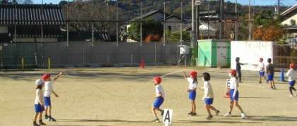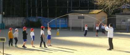 3年生が、体育で大縄跳びに挑戦しています。