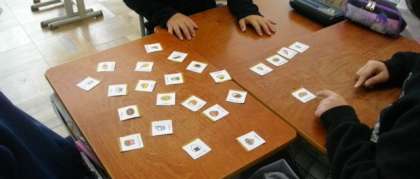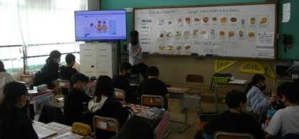 5年生は、外国語科で、食べ物カードを使って活動をしています。