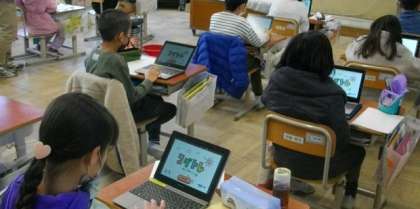 朝の帯時間に、3年生がコグトレオンラインに取り組んでいました。