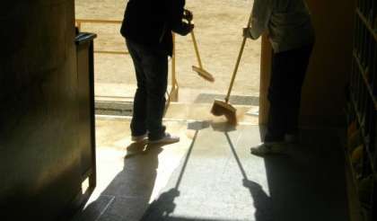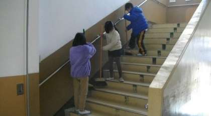 そうじの時間です。みんなが気持ちよく過ごせるように、割り当てられた場所をきれいにしていますね。