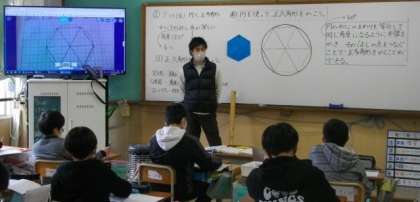 5年生は、円を使って正六角形を作図しています。
