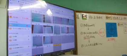 ノートに描いた図形を写真撮影し、ロイロで共有しています。