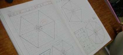 5年生は、円を使って正六角形の作図に取り組んでいます。