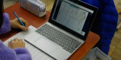授業前に、5年生は、デジタルドリルを使って、点検をしています。