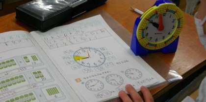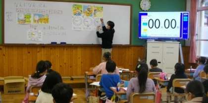 1年生は、「なんじ なんぷん」で時計の読み方を学習しています。