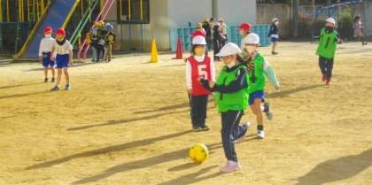 2年生は、運動場でボールけり運動に取り組んでいます。