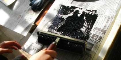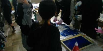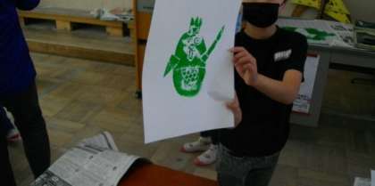 3,4年生は、版画作品の制作に取り組んでいます。