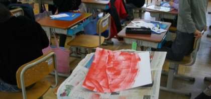 2年生は、版画作品の制作に取り組んでいます。