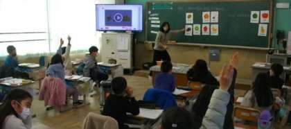 3年生は外国語活動で、好きなものを尋ねる活動をしています。