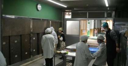 給食の準備が始まりました。