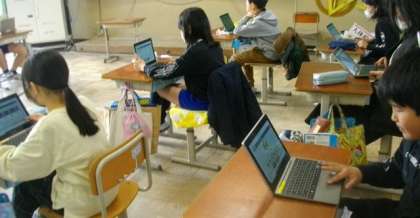 4年生が、昼の帯時間に、コグトレオンラインに取り組んでいました。