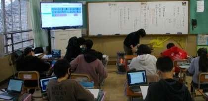 5年生は、自分の考えを相手に伝えるためにどんな工夫ができるのかを考えています。デジタル化したデータを共有したり、共同で編集したりしています。