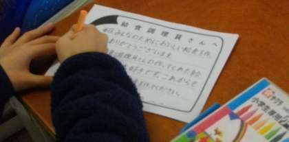 4年生は、給食感謝週間の取組で、調理員さんにお手紙を書いています。