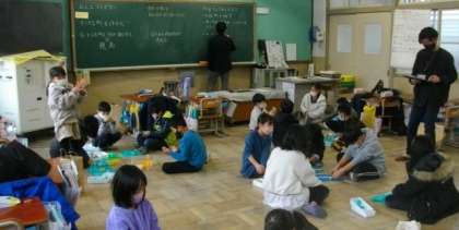 アイデアいっぱいの、たのしいまちづくりがでいましたね。鞍馬小学校の3年生のお友達といっしょに楽しく活動ができました。