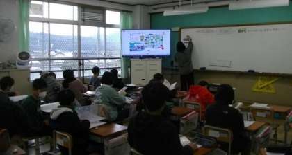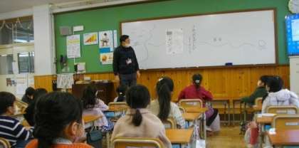 1年生は、「うみへの ながいたび」のお話の読み聞かせを聞いています。
