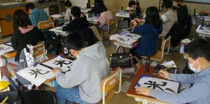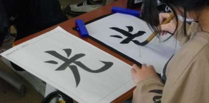 3年生は書写の時間に、「光」という漢字を力強く書いています。