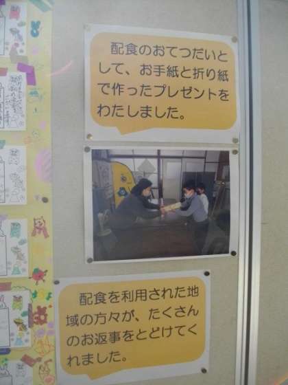 3年生が総合的な学習の時間に、地域の配食のお手伝いとして、お手紙と折り紙のプレゼントをさせていただきました。