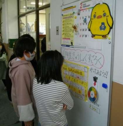 1年生は、給食感謝週間の取組で、給食すごろくを作ってくれました。人気がありますね。