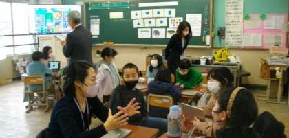 3年生は、外国語活動で、クイズを出し合っています。