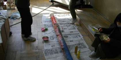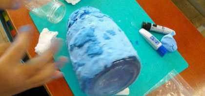 3年生は、身の回りにある材料を工夫して飾り付けています。