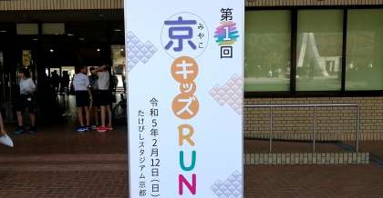 たけびしスタジアム京都で、第1回「京キッズRUN」大会が開催されました。京都市内の小学6年生が1000メートル走の記録に挑戦、本校の6年生が参加しています。