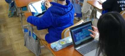 6年生の算数では、場合の数を順序良く考えることによって、なんとおりになるのかを導くための学習をしています。2年生は、タブレットを使って100マス計算に取り組んだり、読書をしたりしています。大きな図鑑を開いて、熱心に見ているお友達もいました。