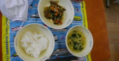 給食の準備が始まりました。