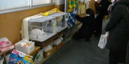 参観日なので、たくさんの保護者や地域の皆様に、ゲージに入ったなかよしうさぎたちをご覧いただきました。