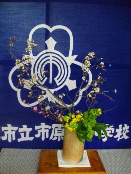 図工展で、地域の方からお花をいただきました。校長室前をはじめ、いくつかに分けて飾らせていただきました。