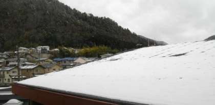 3年生は、校区の安全マップをたよりに、見学に行きました。気づいたことを交流しています。体育館の屋根には雪が残っています。