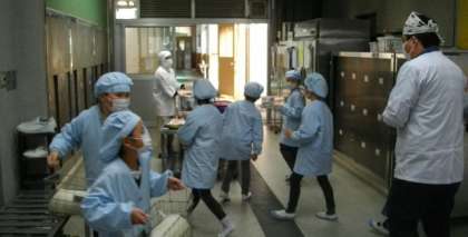 給食の準備が始まりました。