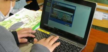 2年生は、キーボードを使って、文字を入力する活動にチャレンジしています。