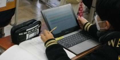 ロイロノートスクールの機能を使って、問題を作って提示しています