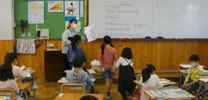 1年生は、6年生を送る会に向けて、おめでとうカードを作っています。