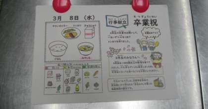 卒業をお祝いしての行事献立です。おいしくいただきましょう。