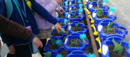 1年生は、毎朝、植木鉢をのぞき込んでいます。