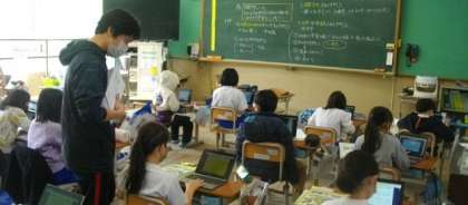 4年生は、京都市について調べたことをロイロのカードに綴っています。