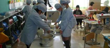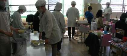 給食の準備が始まりました。