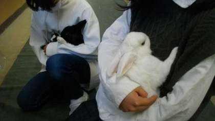 放課後、6年生が、なかよしうさぎのお世話をしてくれました。