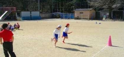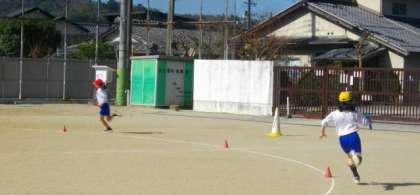 4年生が、体育でリレーに取り組んでいます。