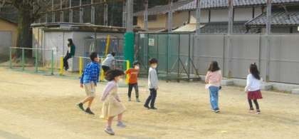 1年生は、ケンケンとび(片足とび)をして遊んでいます。