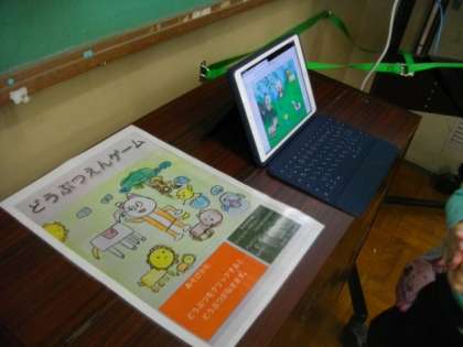 3組で作ったスクラッチのプログラム「どうぶつえんゲーム」も人気です。