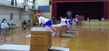 3年生が跳び箱運動に取り組んでいます。