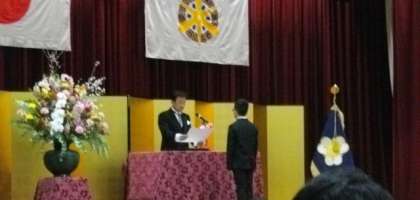 本年度は、学校長より一人ずつ卒業証書を授与しました。壇を降りた後、PTA様より寄贈頂いた卒業証書ホルダーに証書を挟み込み、ホルダーをもって自席に戻りました。