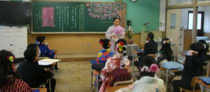 式終了後、卒業生は、一旦教室に戻りました。子どもたち一人一人からお花のプレゼントがあり、二人の担任が感激をしていました。