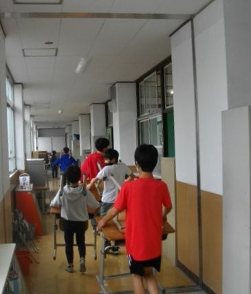 机・いすの移動を新6年生が中心になって進めてくれています。たのもしい姿です。