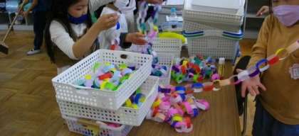 新1年生のために、教室を飾りつけたりプランターを整理したり、1・2年生が活躍をしてくれています 。