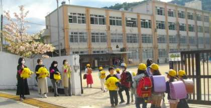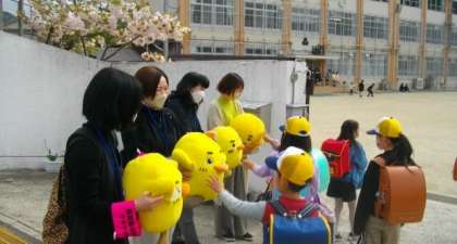 PTAの挨拶運動で、校門前に役員の方々が立っていただき、子どもたちに声をかけてくださいました。いちたくんも、勢ぞろいです。