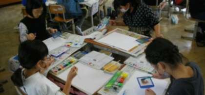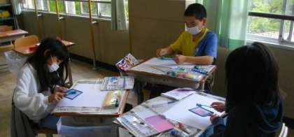 4年生は、絵の具を使って、すてきな模様を描いています。