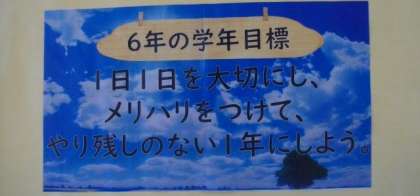 みんなの言葉を集めてつくった目標だそうです。気持ちがこもっています。何事にも一生懸命に取り組む姿はかっこいいですね。ノート作り一つをとっても、大変丁寧に取り組んでいます。